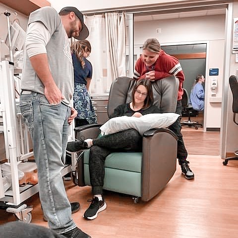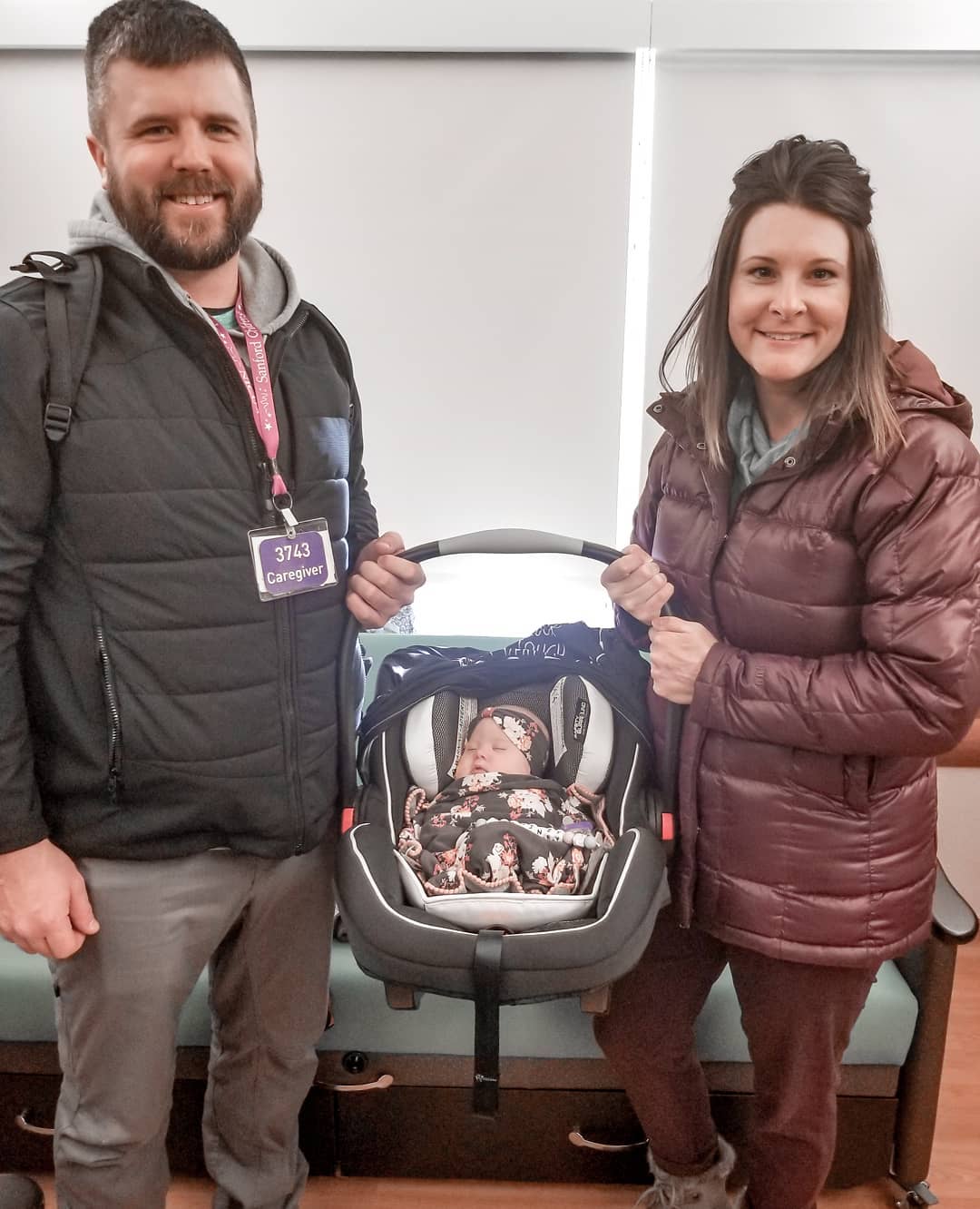I was in Sioux Falls for an appointment with our new team of Dr.’s at Sanford. We had a prenatal Down Syndrome Diagnosis and made the decision to leave Avera (I love my Dr. and everyone at Avera) because we knew we would have a NICU stay and Lainey would need a major surgery at only a day or 2 old. We felt Sanford Children’s Hospital was the best fit. I made the appointment to meet the new team on a Wednesday for that following Monday. I thank God I made that appointment and was already in Sioux Falls at the Dr.’s on that Monday. Dr. checked me at my appointment and I was in early stages of labor. Divine intervention right there!